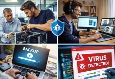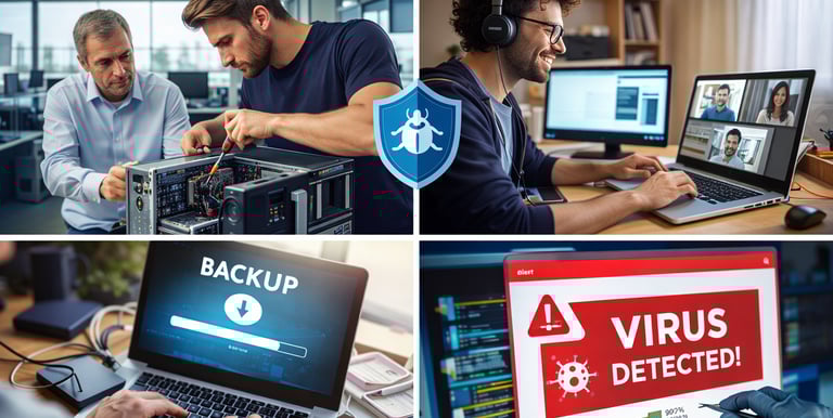 Manutenção, formatação, backup e remoção de vírus com atendimento presencial e remoto.